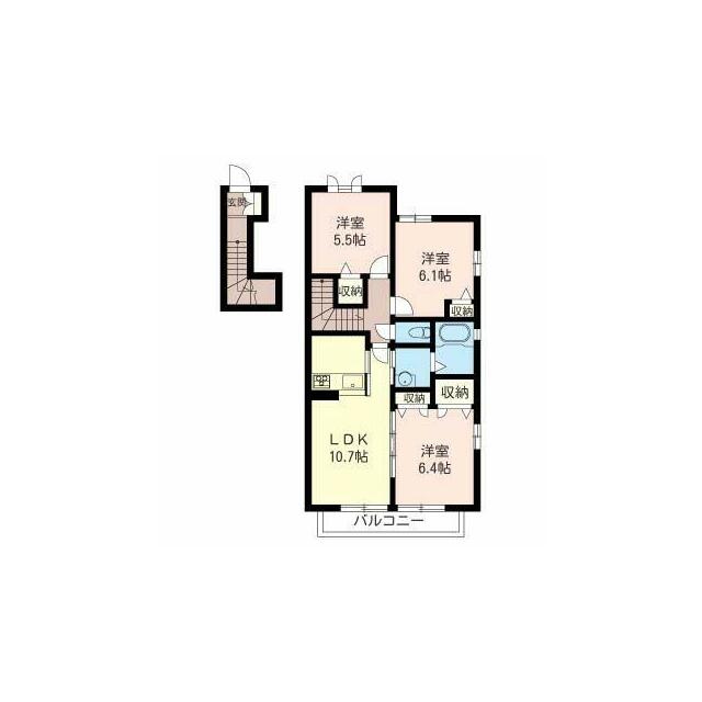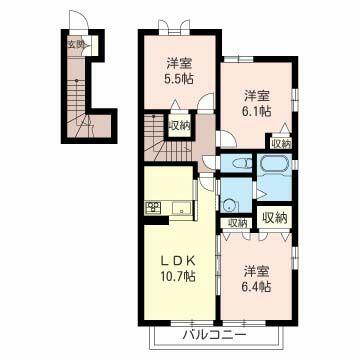 | 間取り | 3LDK(LDK10.7帖 洋室6.4帖 洋室6.1帖 洋室5.5帖) | 主要採光面 | 南東 |