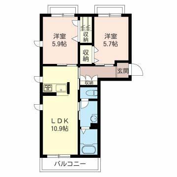 | 間取り | 2LDK(LDK10.9帖 洋室5.9帖 洋室5.7帖) | 主要採光面 | 南 |
