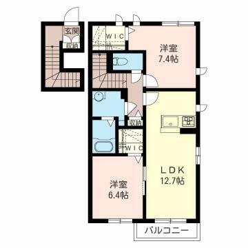 | 間取り | 2LDK(LDK12.7帖 洋室6.4帖 洋室7.4帖) | 主要採光面 | 南 |